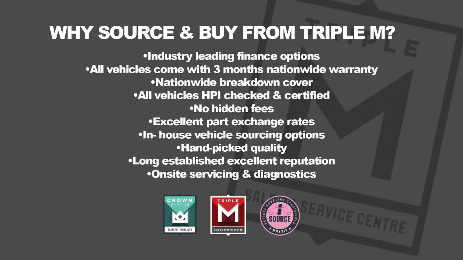 At Triple M Vehicle Sales, we understand that purchasing a vehicle is a significant decision. We are committed to providing a seamless and transparent experience, ensuring your utmost satisfaction. We offer competitive finance packages, strong part exchange prices, extendable warranty options and unwavering customer